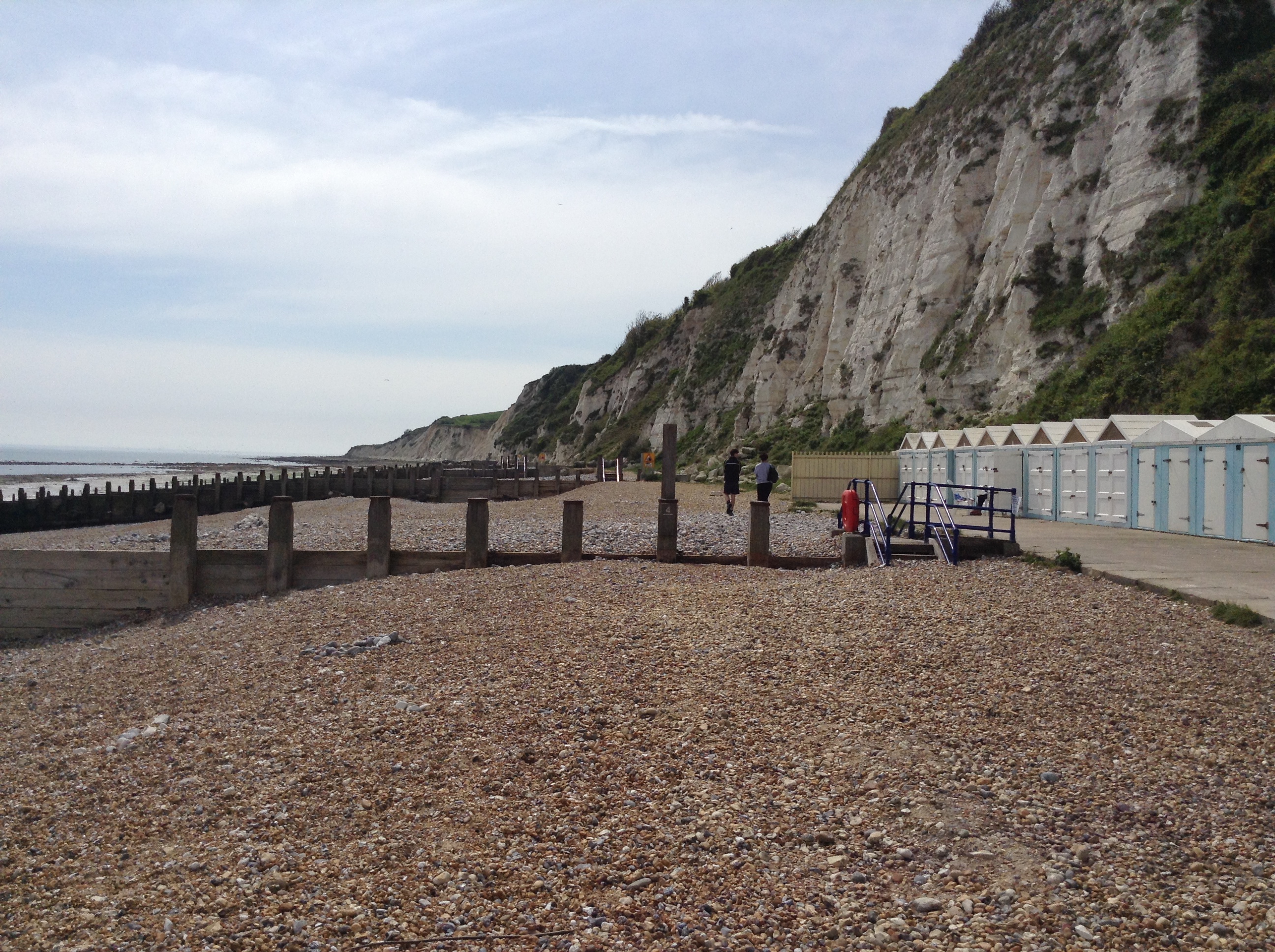 The weather was mild and warm, the atmosphere still and hushed. A few people were around, but it wasn’t crowded. This was the end of the Easter holiday, and not yet the high season for tourism in Eastbourne. The sea washed over the stony beach. The white cliffs of Beachy Head were directly ahead of us.