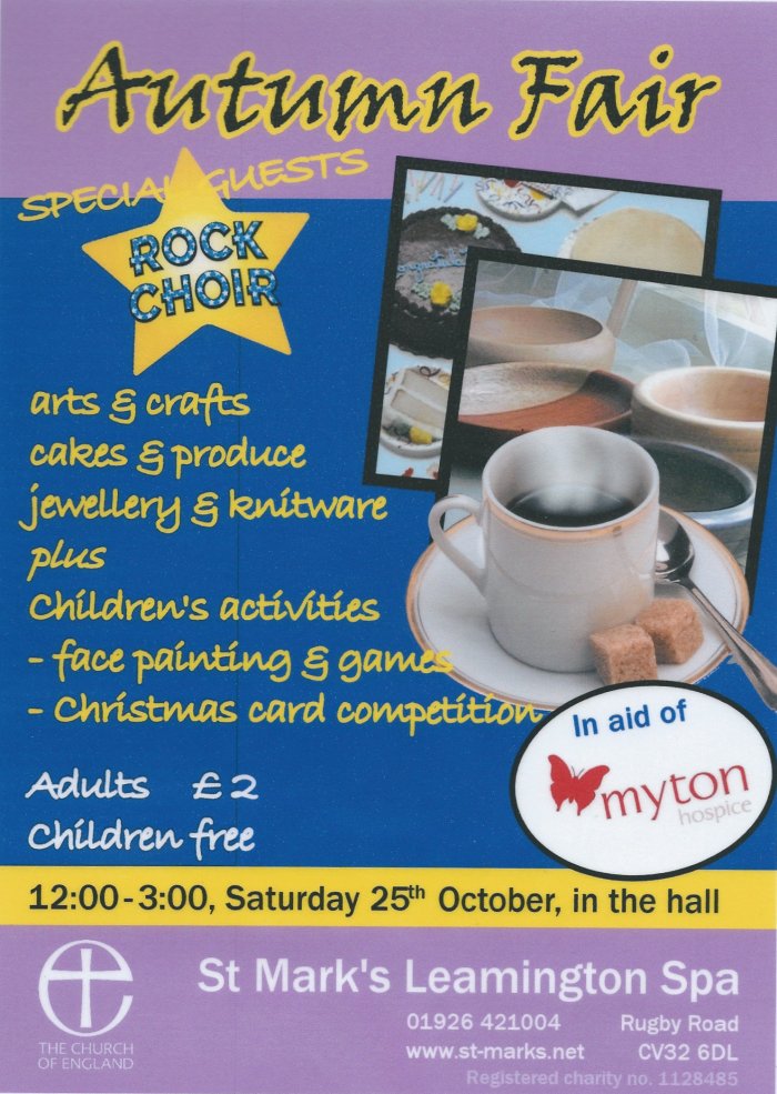 I hope to see you there at the Autumn Fair, 25 October 2014, at St Mark’s Church, Rugby Road, Leamington Spa, CV32 6DL.