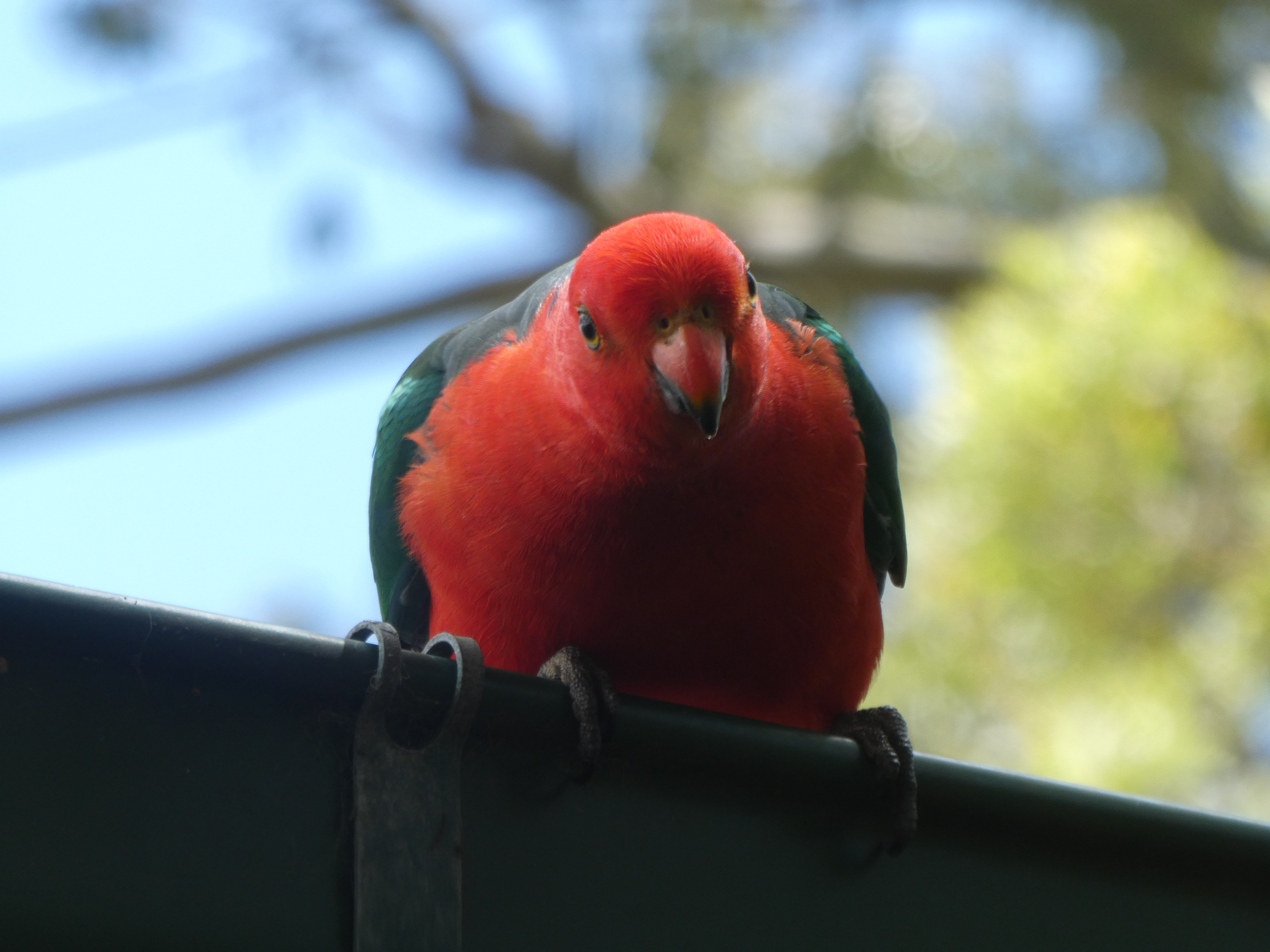 Cloverlea Cottage is not only a delightful restaurant with sublime views across the mountains, but also a meeting point for a variety of native birds, some of whom are keen to perform reception duties, as was the case with this king parrot.