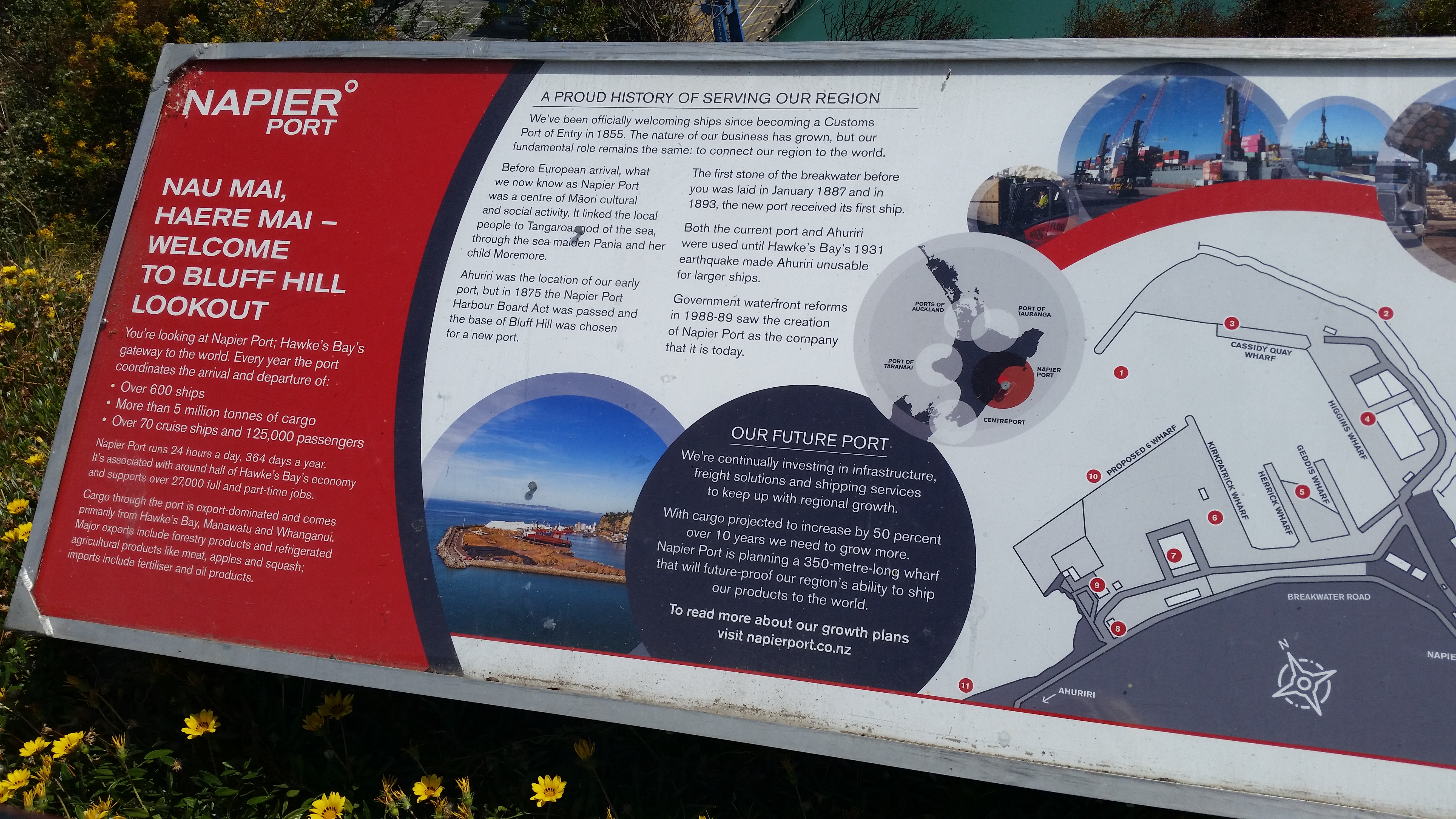 Bluff Hill Lookout was developed by Napier City Council on the remnants of two 2nd World War gun emplacements, so that visitors today may admire the panorama of Hawke’s Bay. We enjoyed the beauty of the gardens surrounding the lookout, full of colourful flowers, and the fascinating view of the bay.