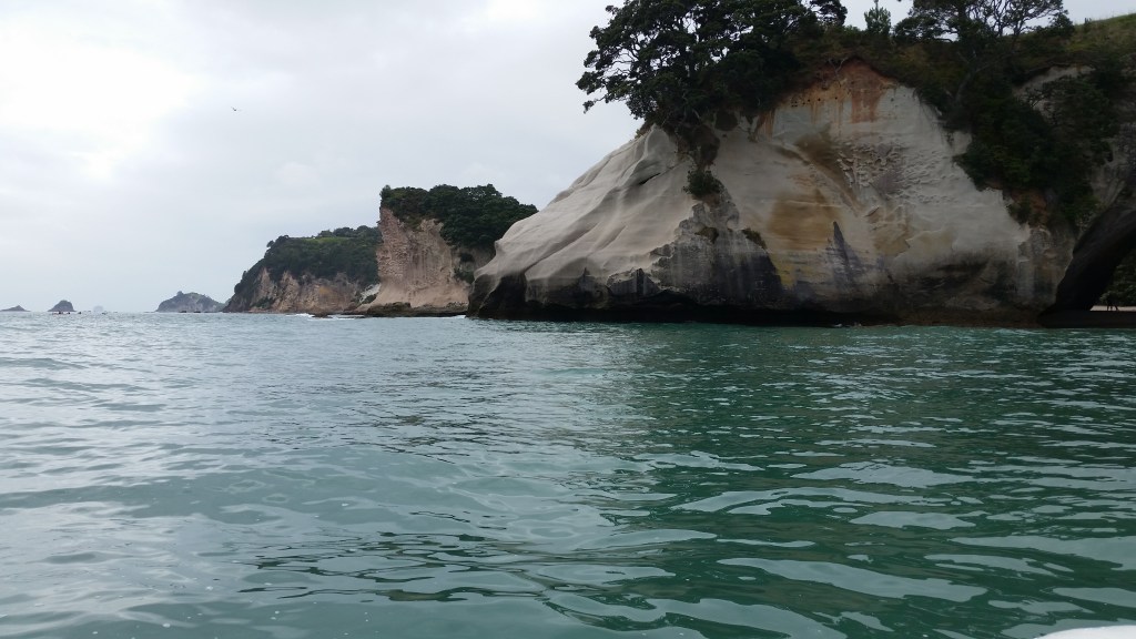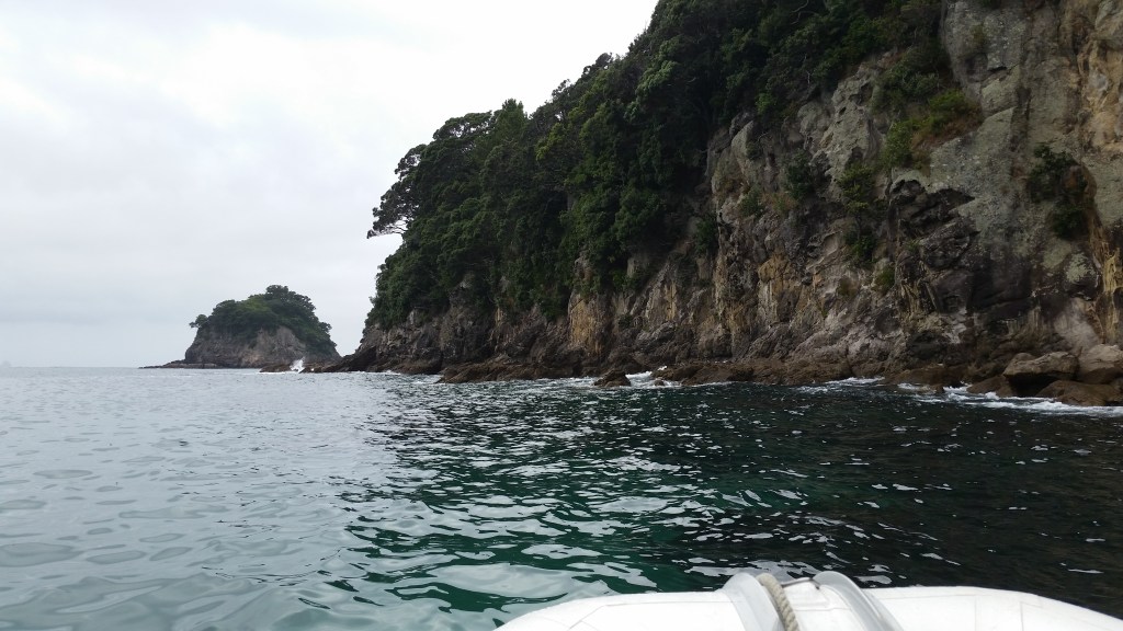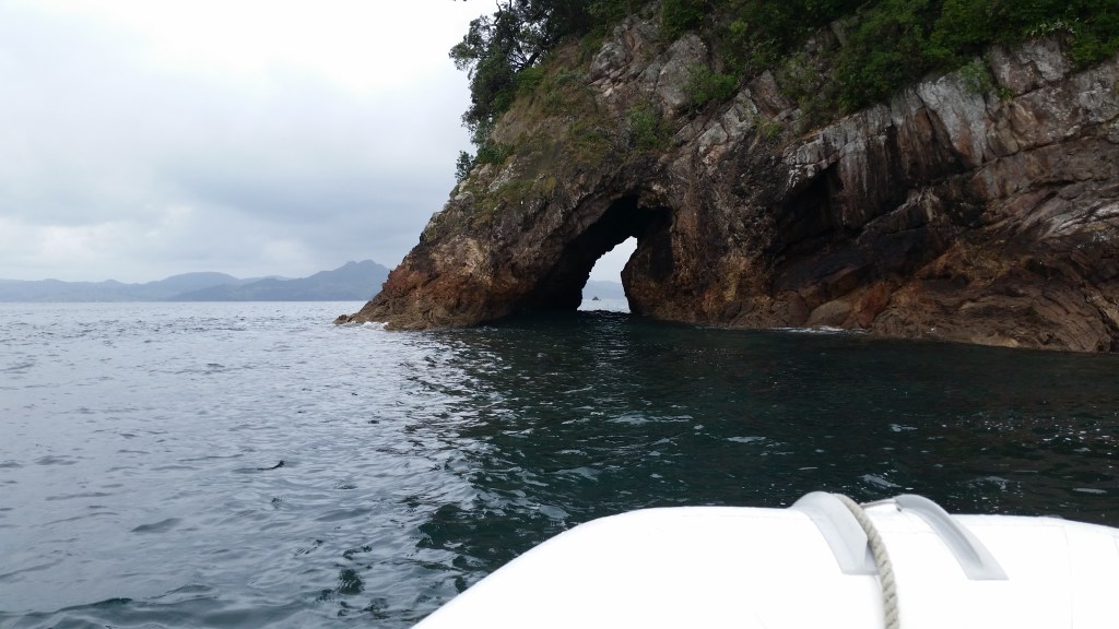 First thing the next day we embarked on a ten-person boat trip out into the Bay of Plenty to see Cathedral Cove. The trip was called The Hahei Explorer.We were told that the early boat trip was the best to take, when the bay would be at its calmest. I must admit that once we were out on the bay, I found myself wondering what it would be like later in the day, if this was what he called “calm waters”!