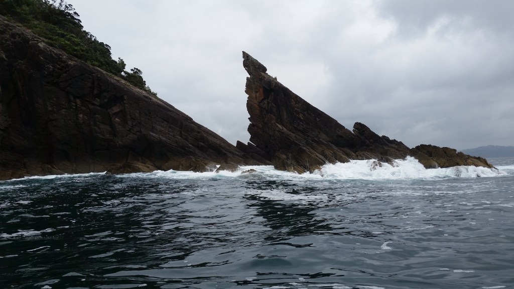 The boat trip was great fun and very invigorating, and our young skipper stood at the back and provided a commentary about the rock formations we passed: a sharp spike sticking straight up, triangular with one long serrated side; a hole in the rock, a cave through which we cruised.