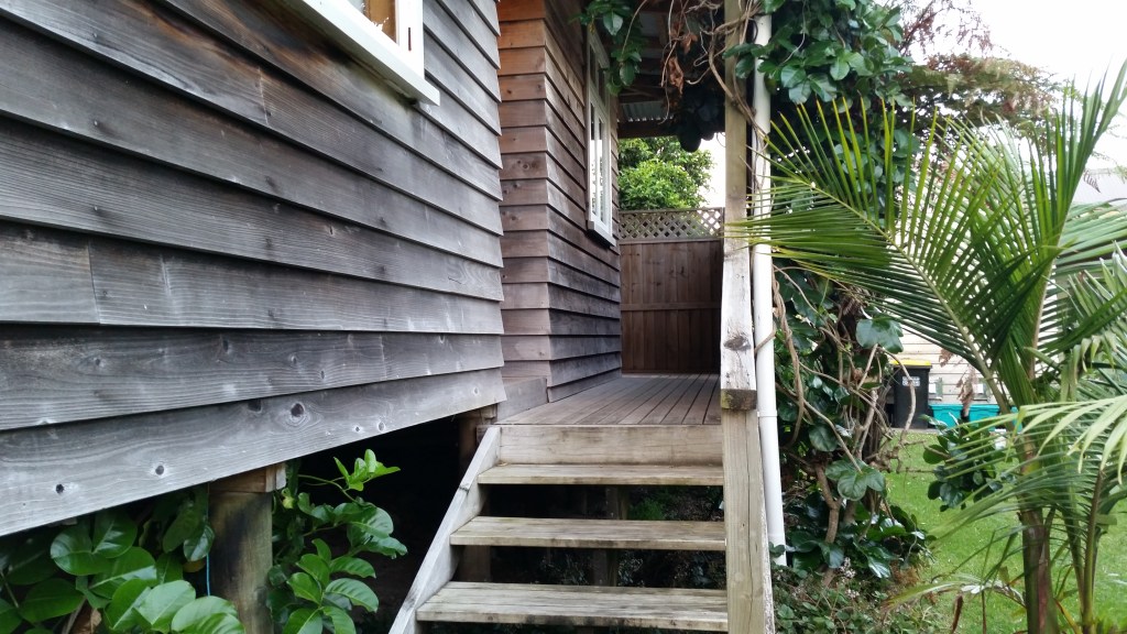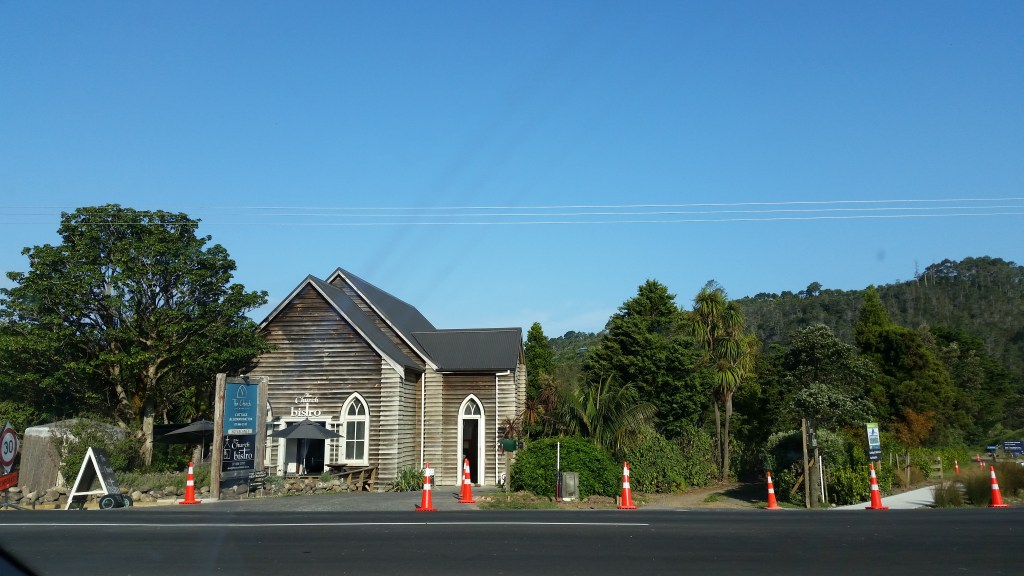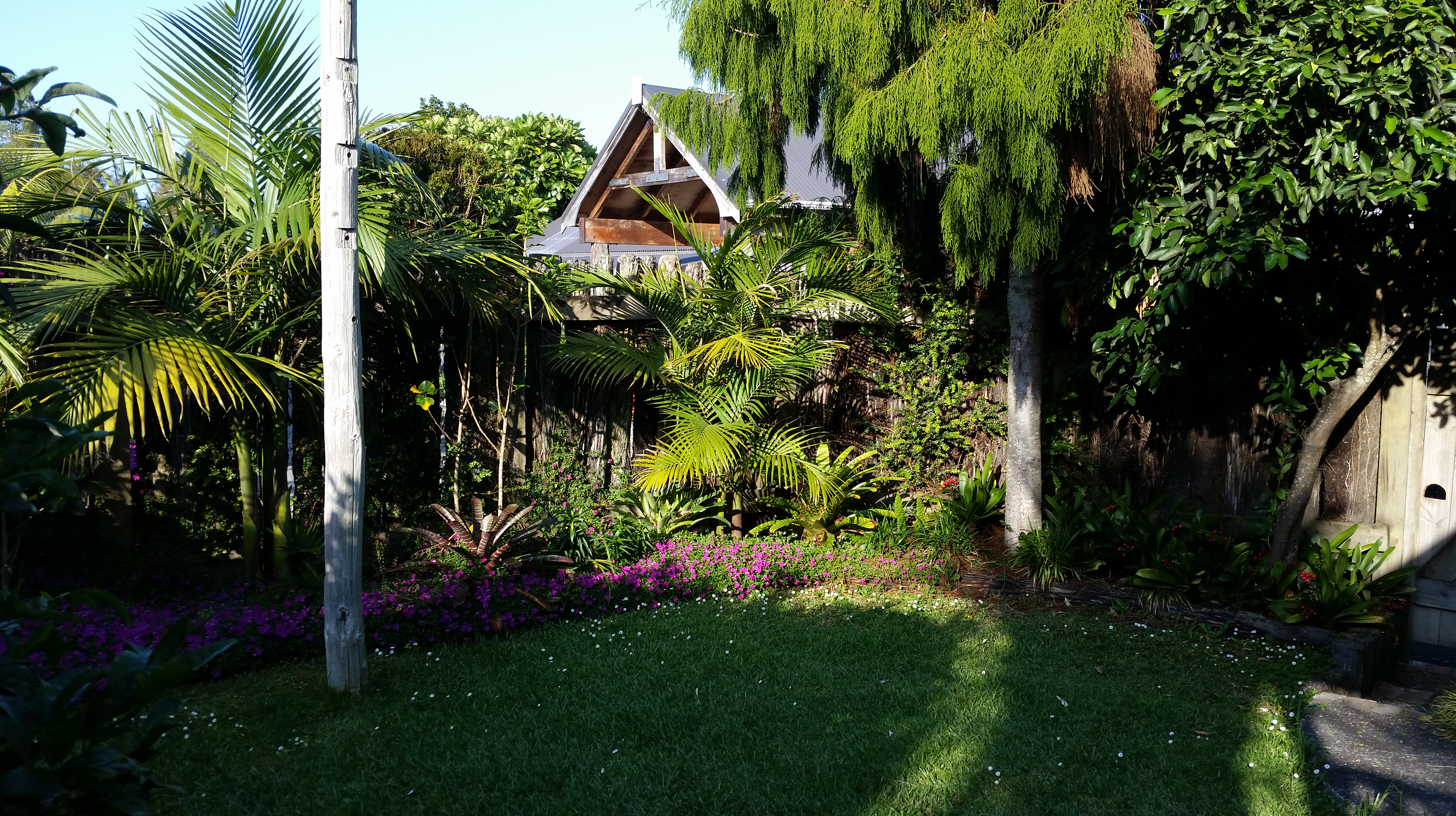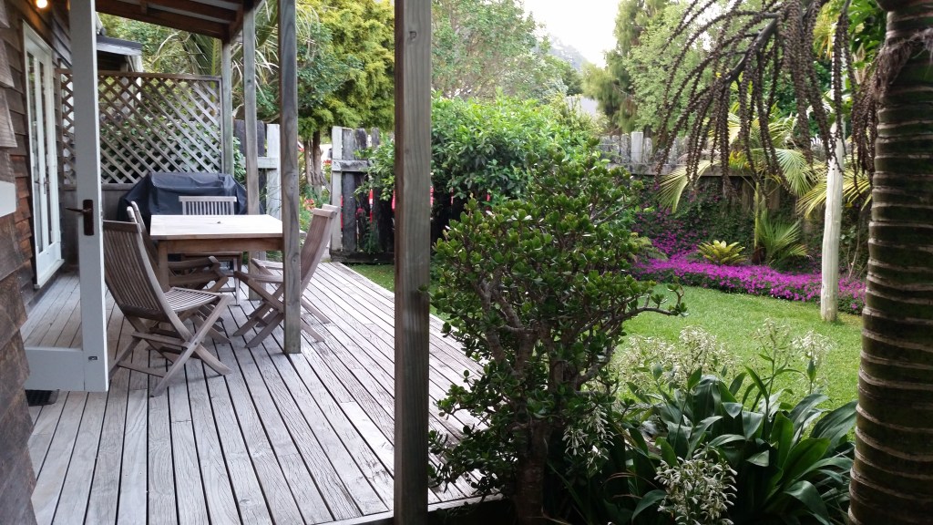 Arriving at Hahei, we found our accommodation: one of the cottages forming part of a development named “The Church Accommodation“. Each cottage is set in lush subtropical gardens; the site originally surrounded a former Methodist Chapel which has now been converted into a bistro. It is a well-designed development for tourist accommodation and we weren’t the only visitors wandering around gazing at the flowers in the gardens, enchanted by the subtropical planting.