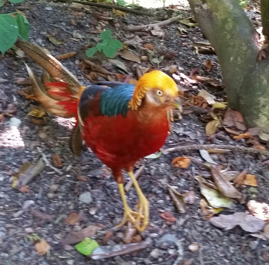 The route to Coromandel took us via the Katikati Bird Gardens at Aongatete, on the Bay of Plenty. We toured the gardens with feed for the birds; many fowls and their chicks scurried along the paths, among beautiful planting and a rich variety of flowers in brilliant colours.