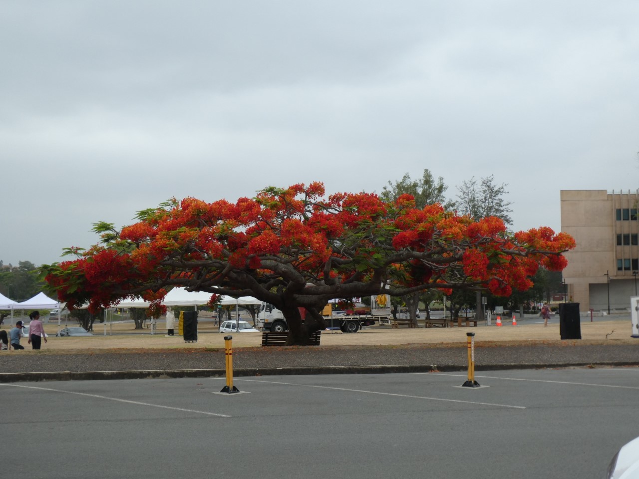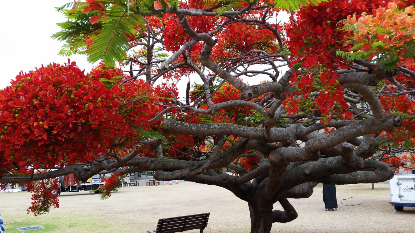 Promotional websites for Brisbane will point up a number of places to visitors as the “jewels in the city’s crown” but I think the University of Queensland campus certainly deserves to be one of them. I worked there in the School of External Studies, during the time I lived in Brisbane during the 1980s. Much has changed since then but I still enjoyed walking once more through the cloisters of the Great Court, and admiring the wonderful landscaping and of course the magnificent poincianna tree with profuse blossoms, and fragrant frangipani trees which you may see here. Among many other outstanding features, the campus also has a stunning art gallery.