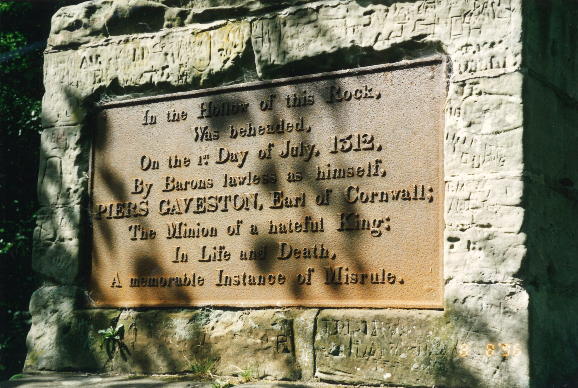 Nearby, Blacklow Hill became the scene of a notorious summary execution on 1 July 1312. Guy de Beauchamp, earl of Warwick, had lured Piers Gaveston, King Edward II’s favourite, to Warwick Castle. Guy had long wanted to get rid of Piers, who had insulted him personally, and was exerting far too much influence over the king. Also he had flouted commands to leave England and stay out, if he valued his life. The earl’s men dragged Piers in a cart to Blacklow Hill, where they ran him through with a sword and beheaded him. The place of his execution is now occupied by Gaveston’s Cross. [image]