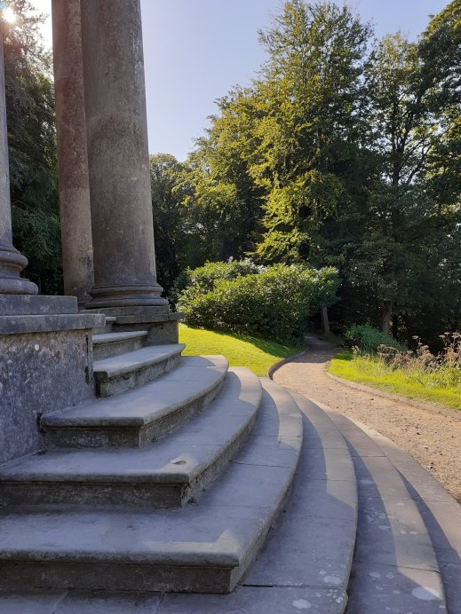When we visited the garden, originally created in the eighteenth century by the Hoare family, we learned that Henry “the Magnificent” (‘gentleman gardener’) had relied on elements of concealment and surprise in his grand vision of this classical landscape. So we took the route that Henry had set out specially for his guests to take, from the house to the lake, and experienced the concealment and surprise and revelation for ourselves.