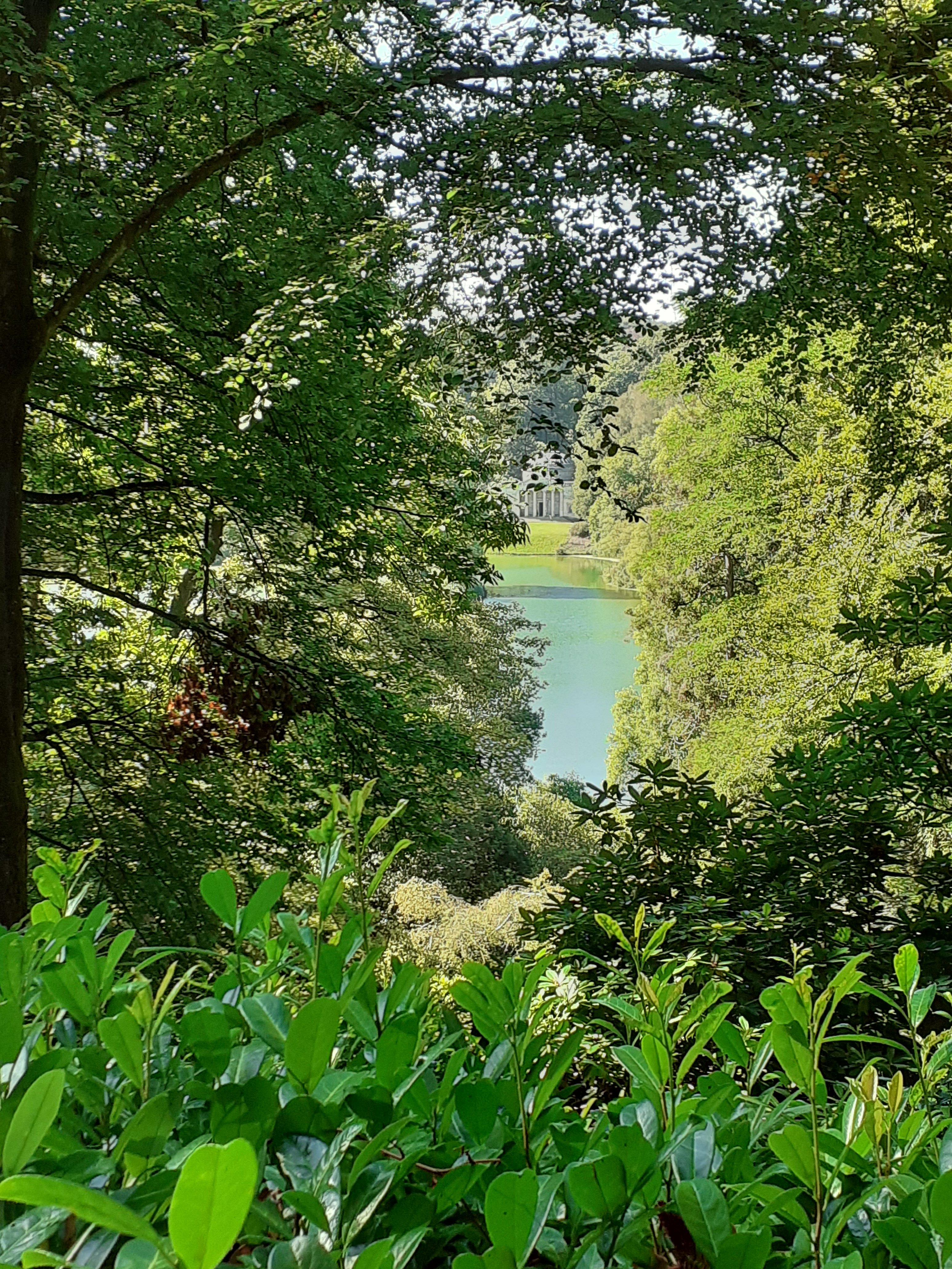 When we visited the garden, originally created in the eighteenth century by the Hoare family, we learned that Henry “the Magnificent” (‘gentleman gardener’) had relied on elements of concealment and surprise in his grand vision of this classical landscape. So we took the route that Henry had set out specially for his guests to take, from the house to the lake, and experienced the concealment and surprise and revelation for ourselves.