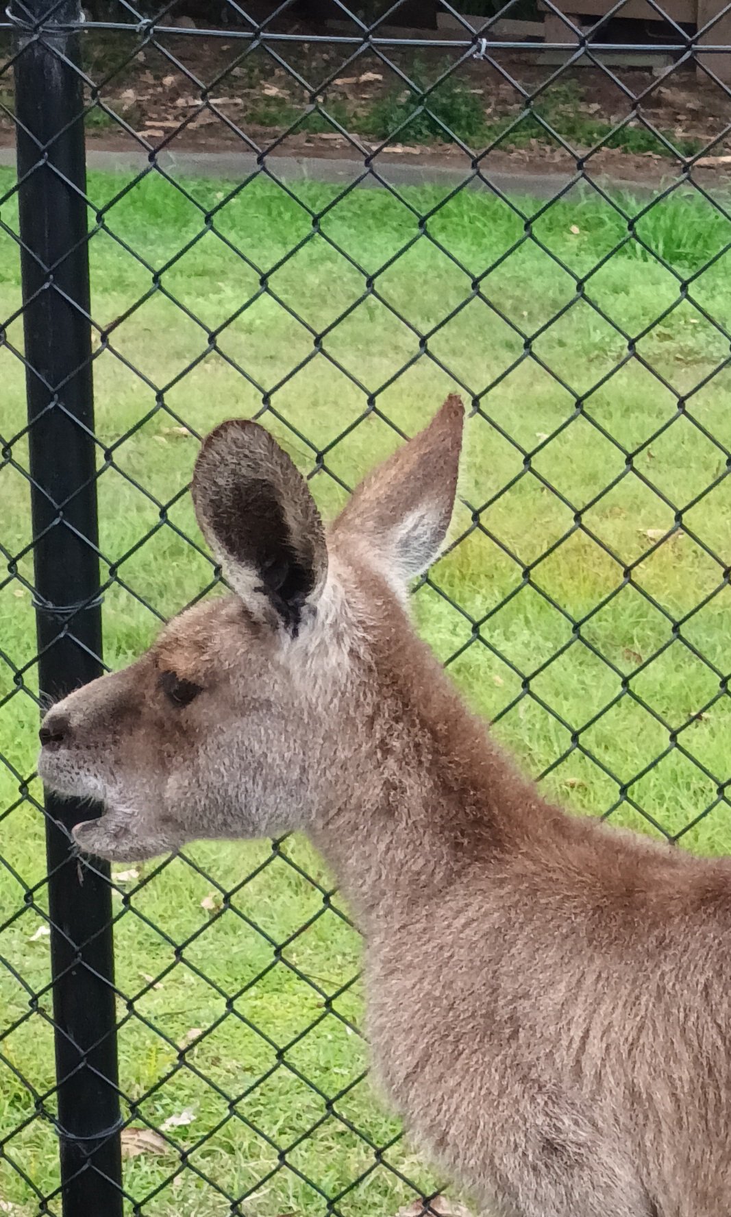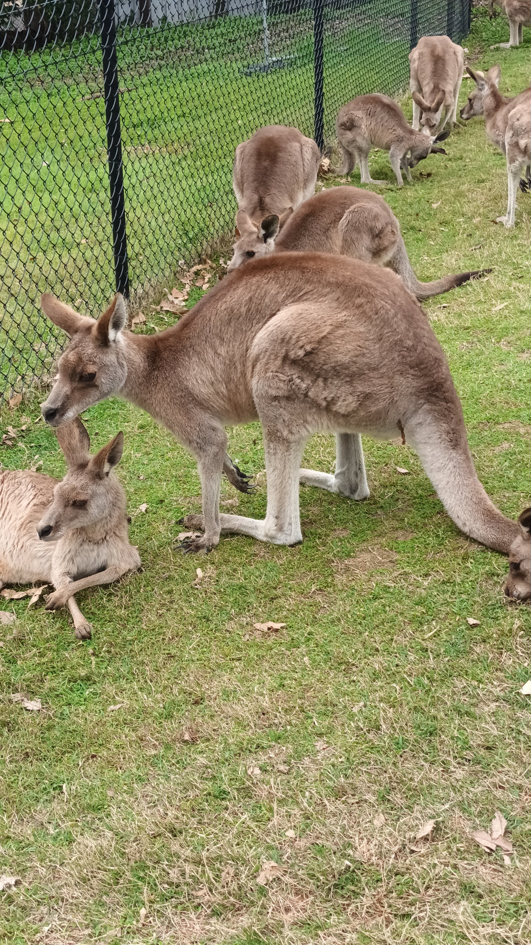 The wallabies and kangaroos were relaxing as they browsed in a corner of their paddock: