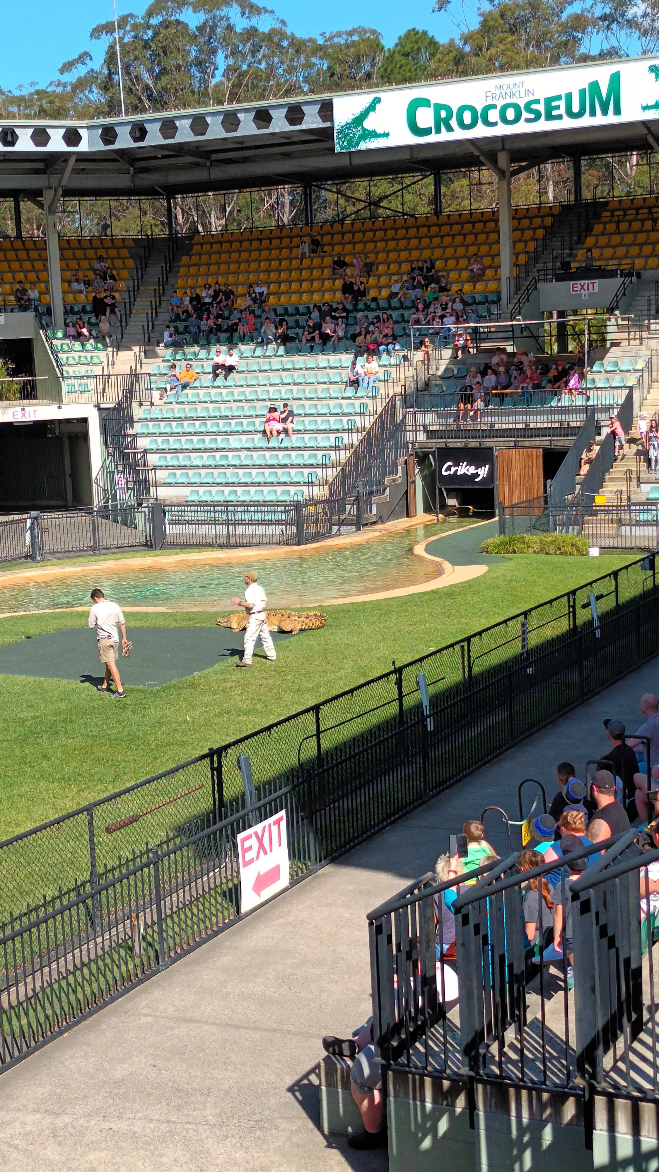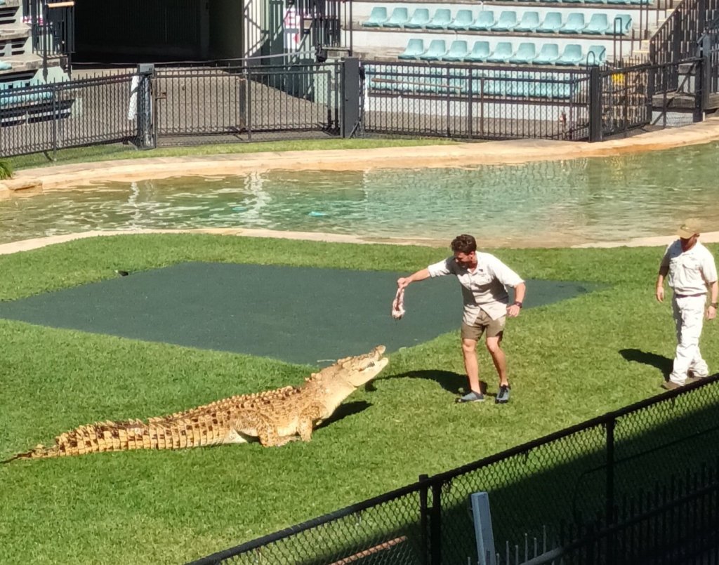 Finally, the crocodiles rarely fail to respond in the Crocoseum, as I have found on previous visits to Australia Zoo. This time however, one of them really wasn’t bothered about taking his snack from the keeper at the side of the pool, although he was tempted several times. Instead, he cruised over to the high platform and circled around waiting for his treat to be dangled to him from above, which he obviously considered to be much more fun.