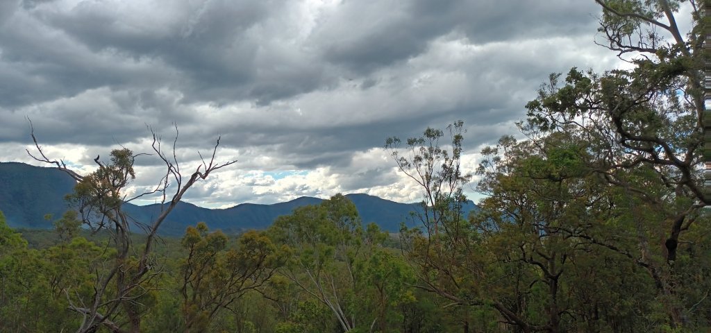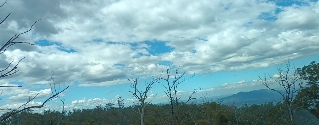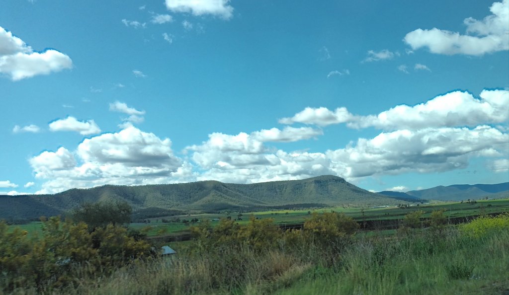 I love the area of the New England Highway which becomes the Cunningham Highway, as we drive through the plain heading for the mountain range ahead: the Great Dividing Range. As we drive up through Cunningham’s Gap we glimpse a glorious panorama: and at one point we begin to hear the exquisite sound of the bellbirds.