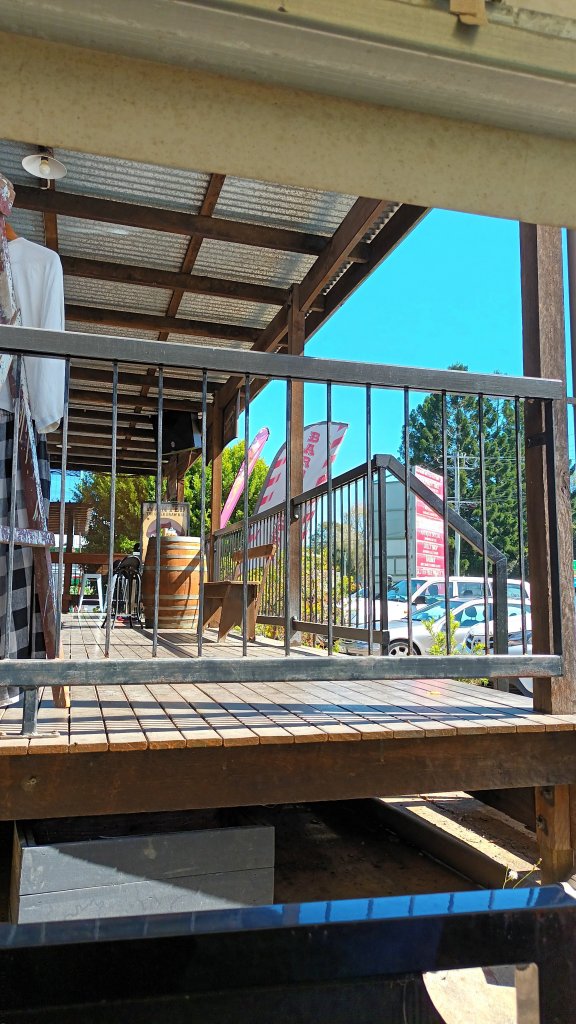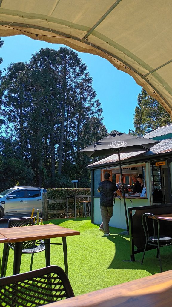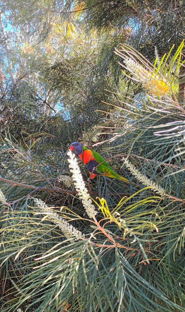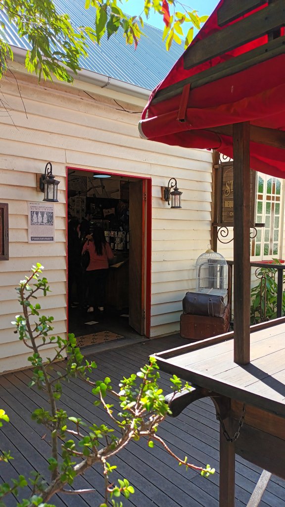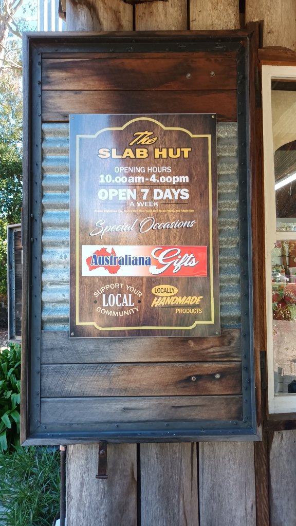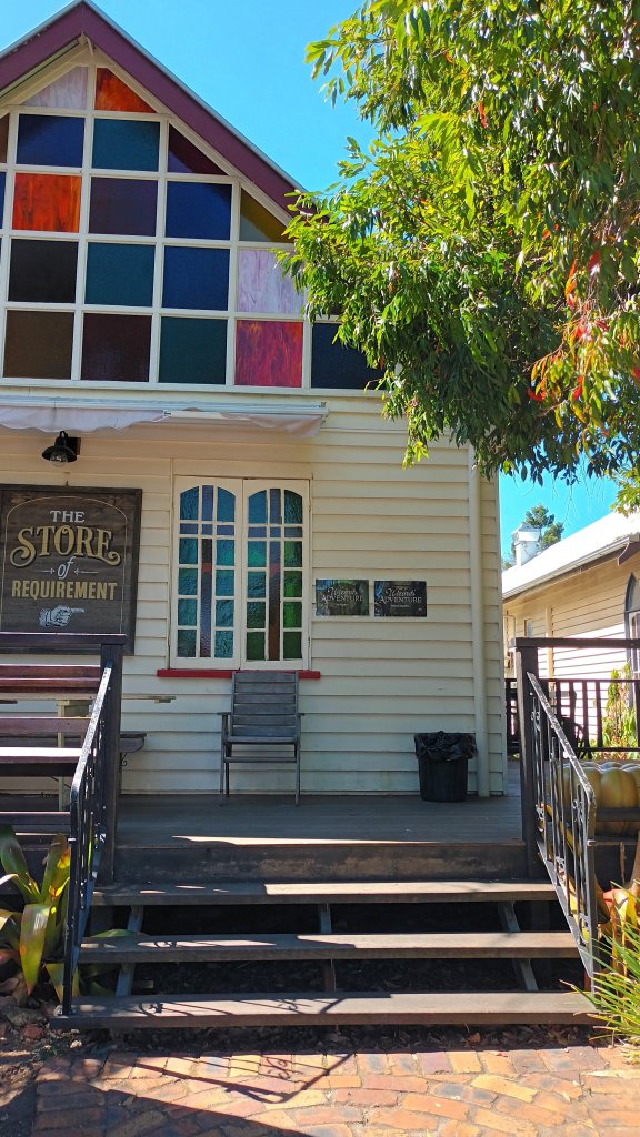 Then we drove to the village of Samford, via Dayborough. Samford is like an early colonial settlers town, and has a beautifully landscaped park with a gift shop, art gallery and garden centre. It also has The Store of Requirement – all things Harry Potter. Samford is distinctively different from an English village, with places like The Slab Hut: and, of course, rainbow lorikeets in the melaleuca trees. We had a delightful lunch at The Flying Nun Cafe.