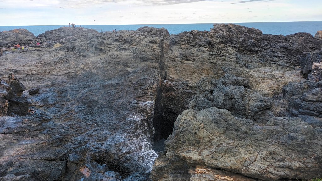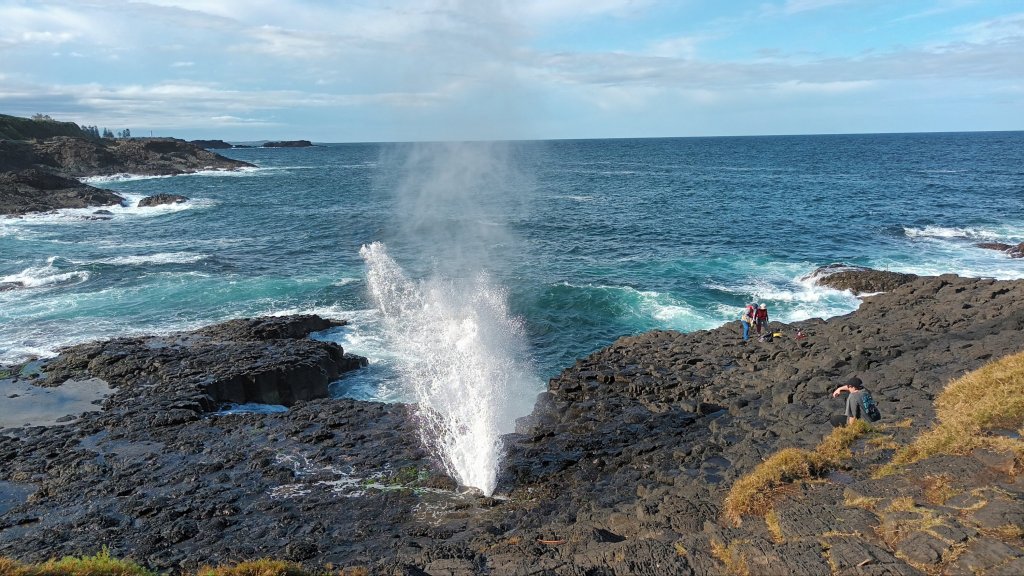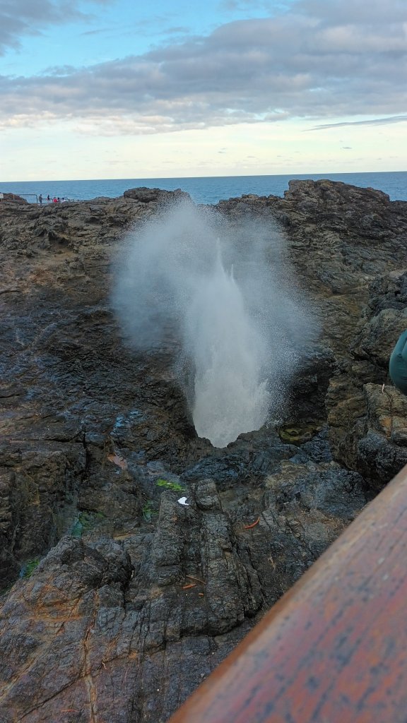 Kiama itself is a lovely town which, as it first appeared to us reminded me of Polzeath in Cornwall, UK. White houses arranged across the slope down to the sea made a very picturesque scene. Kiama the town has much to offer but there’s no doubt about the main attraction for visitors, which gives all the watching tourists such fun and excitement. But of course – it’s not a good idea to venture onto the rocks and find yourself in the wrong place at the wrong time!
