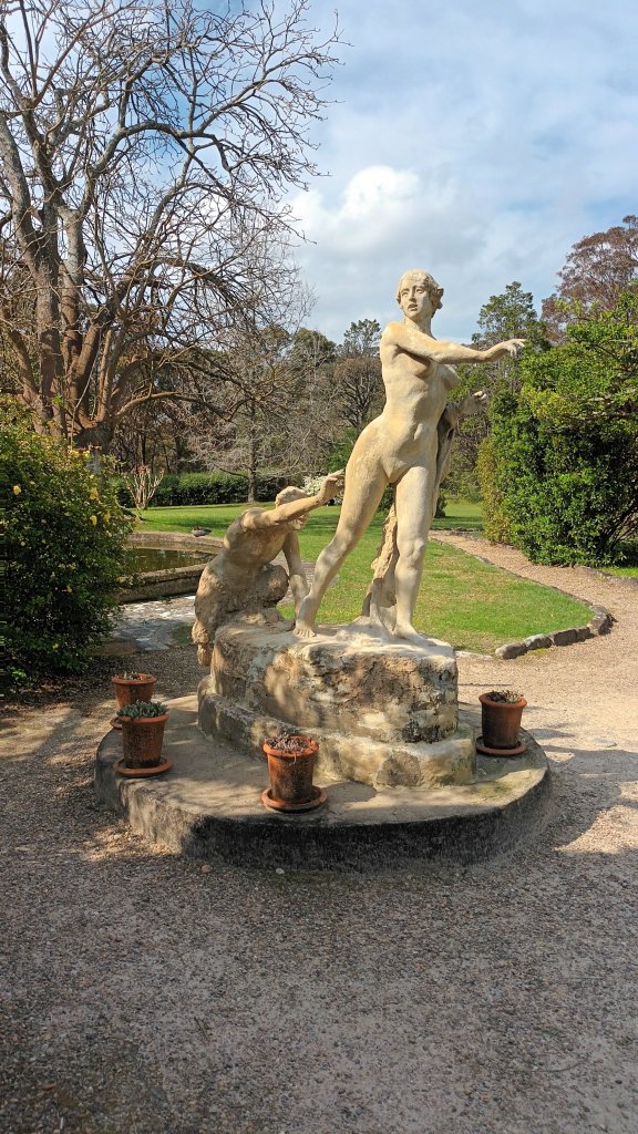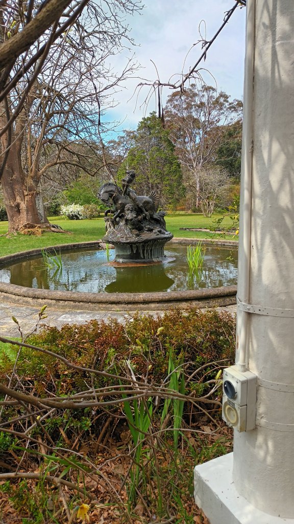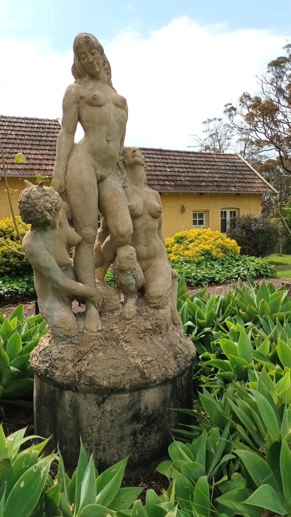 We drove on up the highway and crossed a steep gorge, later passing through Camden near the Australian Botanic Gardens, and green velvet hills. I noticed signs saying ‘Arcadian Hills’ pointing us to ‘Kenilworth Falls’ and ‘Three Sisters’. We arrived at the Norman Lindsay Gallery at 12.50pm.