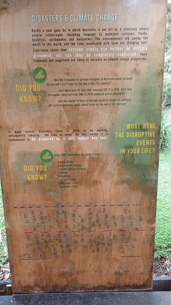 Further down the path we found a very moving and informative exhibition about the wildfires, about how human beings respond to disasters and how hope can arise from despair. What you read here is of vital importance because even now as I write this blog post, due to worldwide government inaction, it may already be too late to avert irreversible climate tipping points leading the planet to catastrophe.