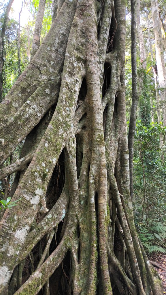 Finally we walked along the rainforest circuit with its abundant strangler figs, buttress roots, and its twisty whirligig branches and vines. Even a walk here shows you life and death in the rainforest. That is nature: life and death working together in a symbiotic relationship. Perhaps we can take heart from that.