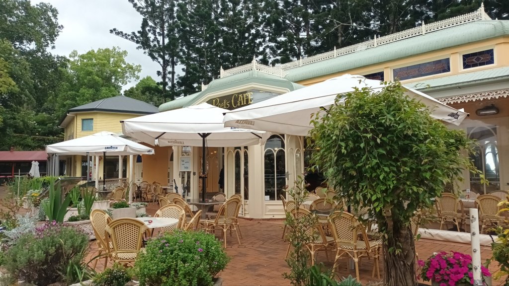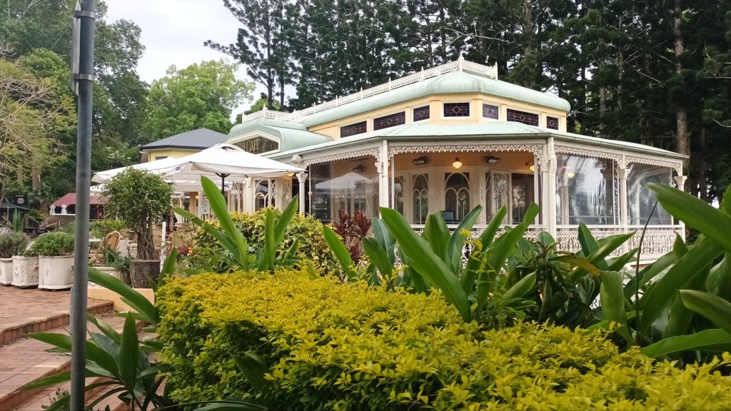 We stopped at the Poets Cafe in Montville for coffee. White iron lace balustrades terraces, sublime mountain views, a Chapel glimpsed through the trees: this cafe conjured up for me the ambiance of an elegant Konditorei and I couldn’t help imagining what it would be like to take a spiritual and creative retreat here… permanently!