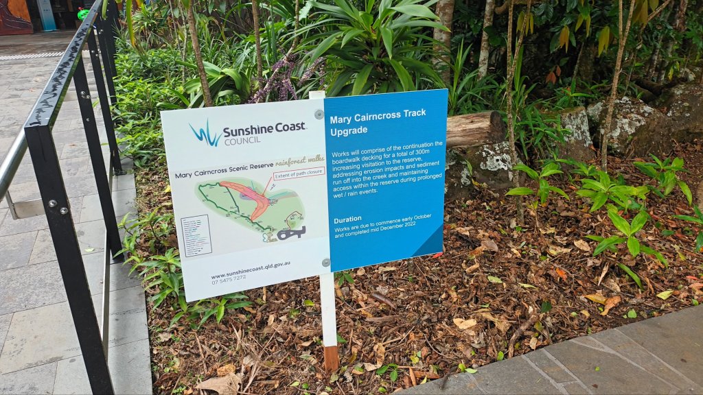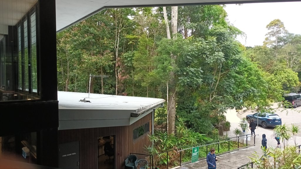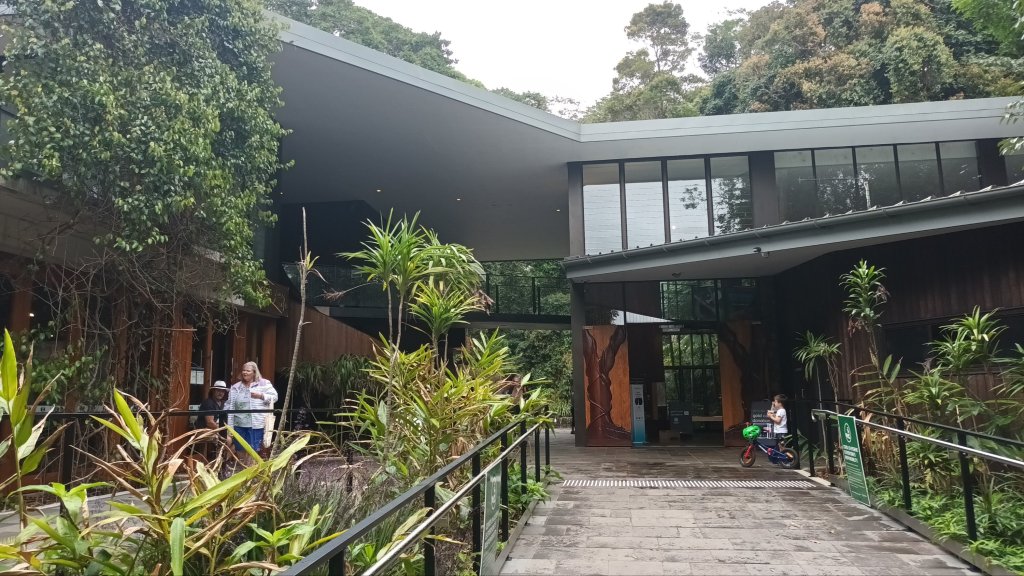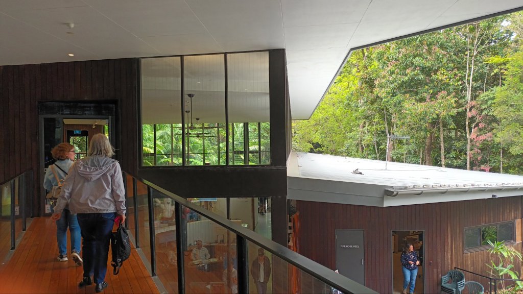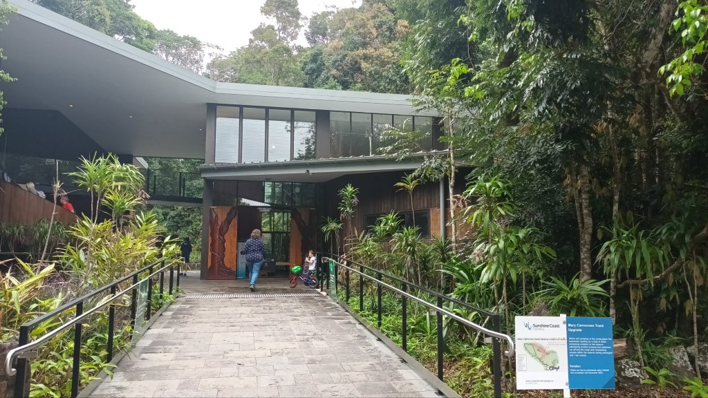 Later we drove on to visit the Rainforest Discovery Centre at the Mary Cairncross Scenic Reserve located, as we learned, in Jinibara Country. From there can be viewed a glorious panorama of the Glasshouse Mountains, each one identified with aboriginal dreamtime legends about the eleven members of Tibrogargan’s family.