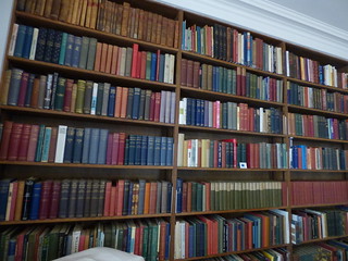 Elsewhere we may sink into sumptuous leather armchairs, or Chippendale chairs, and the finest oak tables to place our books on. The walls are lined by deep carved oak shelves, from floor to ceiling, filled with a glorious display of books all mysteriously bound in the same restrained russet or midnight-blue or bottle-green with gold tooled titles on the spine. To decide on a book, you had to go through the shelves and take one out and open it and scan the title page inside and the first few paragraphs and decide what you think.