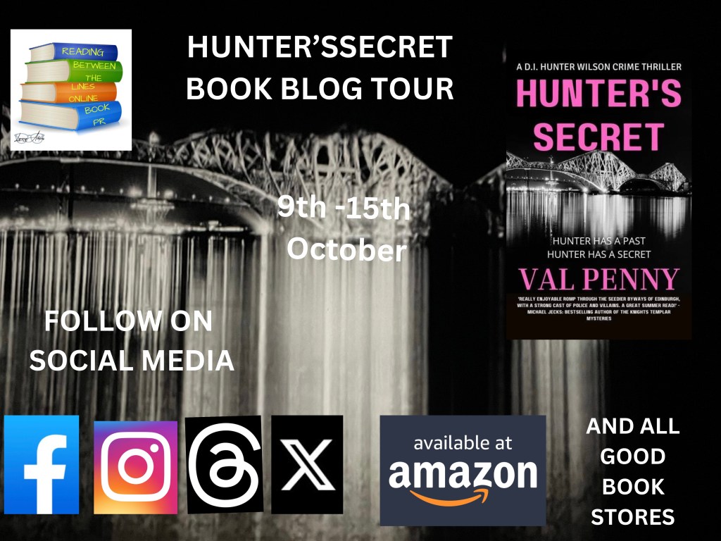 I’m pleased to be taking part in the Blog Tour for Val Penny‘s latest Edinburgh crime novel, #5 in her Edinburgh Crime Series, Hunter’s Secret published by Spellbound Books,