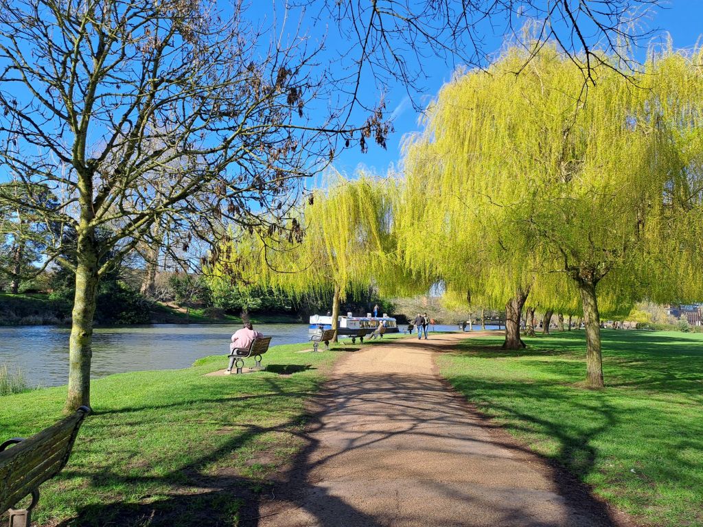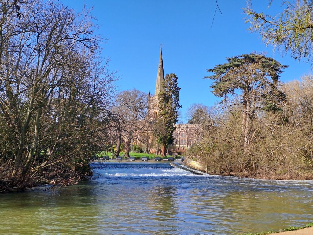 The riverside walk past the theatre and along to Shakespare’s church of Holy Trinity is enchantingly beautiful on a warm, drowsy morning or afternoon – as it was when I recently did the walk in March 2026.